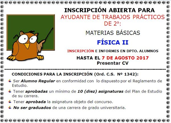 DEPARTAMENTO DE MATERIAS BÁSICAS Llamado a AYUDANTE DE TRABAJOS P... ver más.