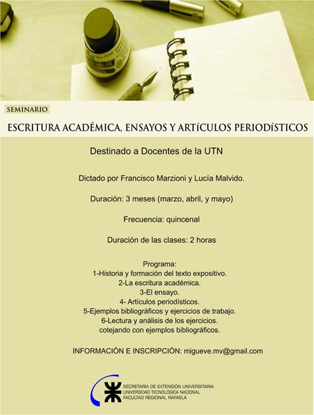Destinado a docentes de la UTN, se trabajará sobre: escritura académ... ver más.
